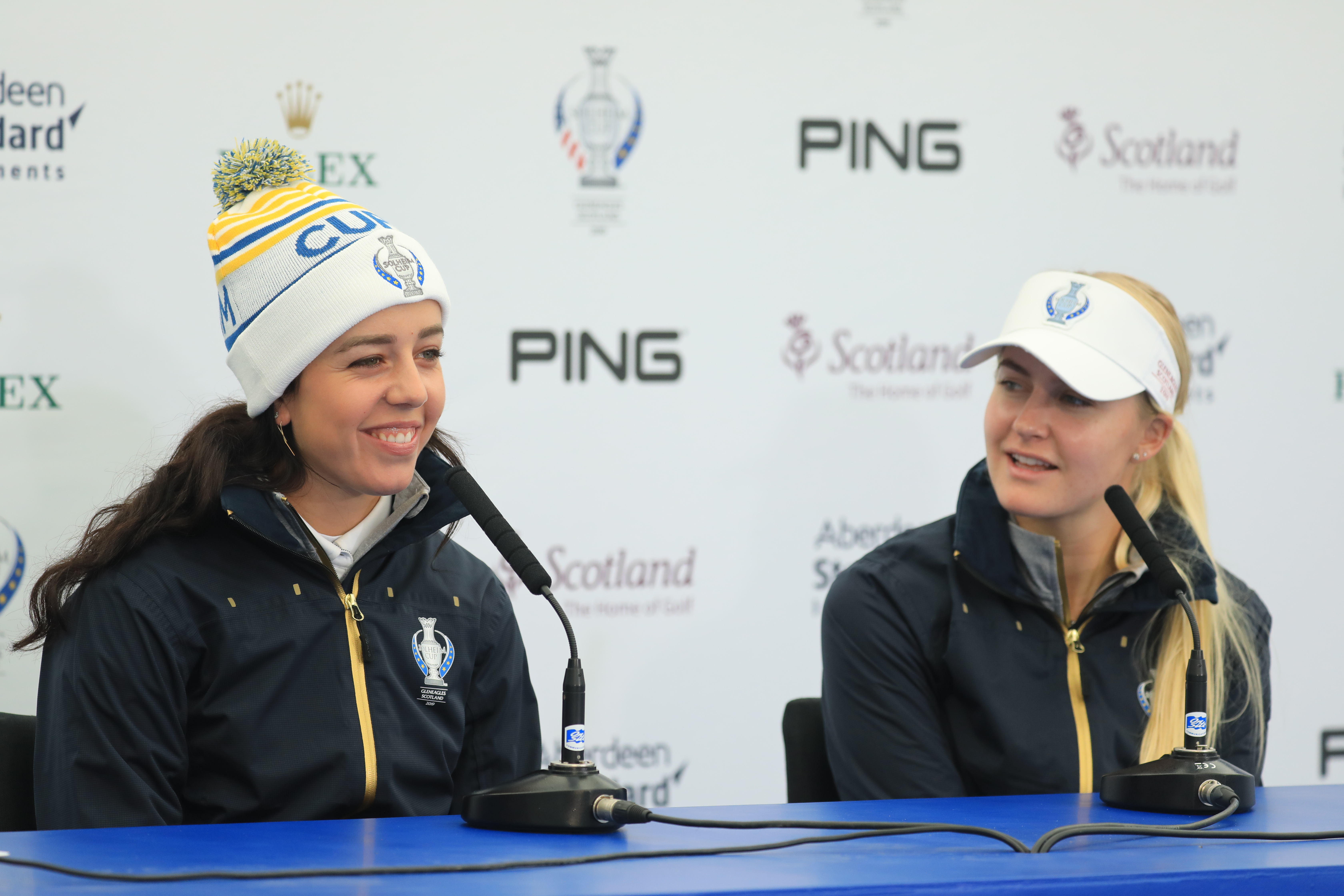 Georgia Hall and Charley Hull of England during media interview